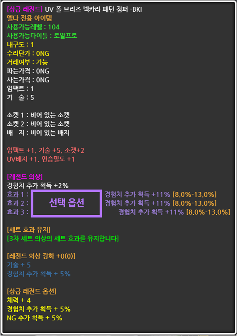 ▶ 폴 브리즈 상급 레전드 의상 3옵션 (옵션 선택, 잠재력 확장 Max, 옵션 +11%) 설명