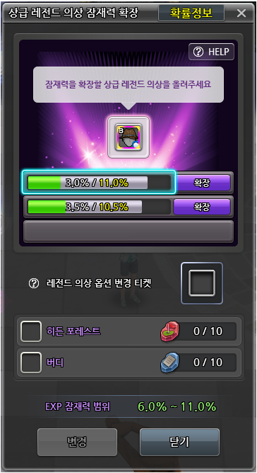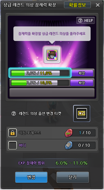 ❤️ 상급 레전드 의상 잠재력 확장 및 옵션 변경