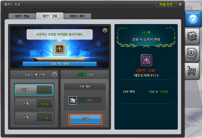 🔹 레전드 강화 진행하기