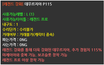 - 레전드 강화를 진행하면 아이템의 경험치 배율이 강화 단계에 따라 증가합니다.